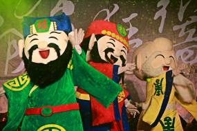 搭配招財進寶兩位俏皮可愛的童子一同演出,是廟會劇場演出中的一大創意編排。